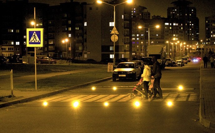 В 2015 году в г.Минске вблизи средней школы №25 на трех нерегулируемых пешеходных переходах установлены датчики, реагирующие на появление на переходе пешехода и предупреждающие водителя о появлении пешехода путем мигания светодиодных вставок, вмонтированных в проезжую часть.